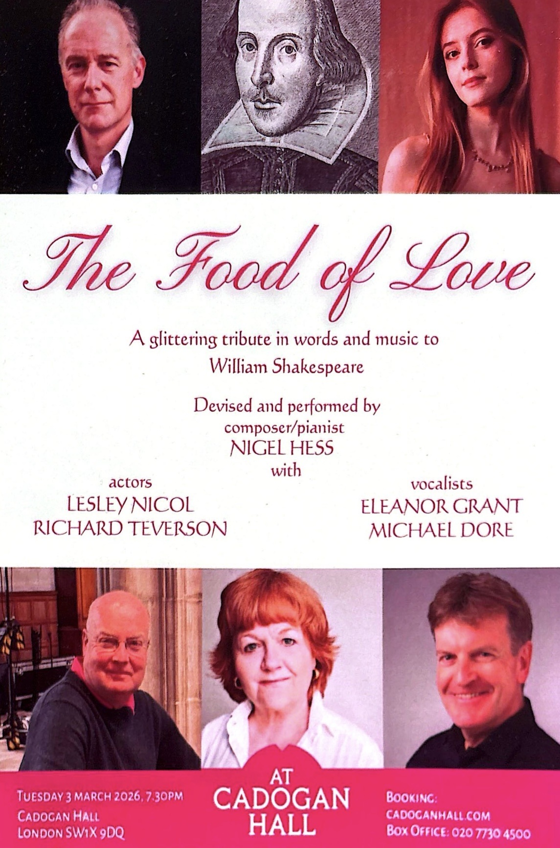 & Nigel Hess's 'The Food of Love' at London's Cadogan Hall on March 3rd.